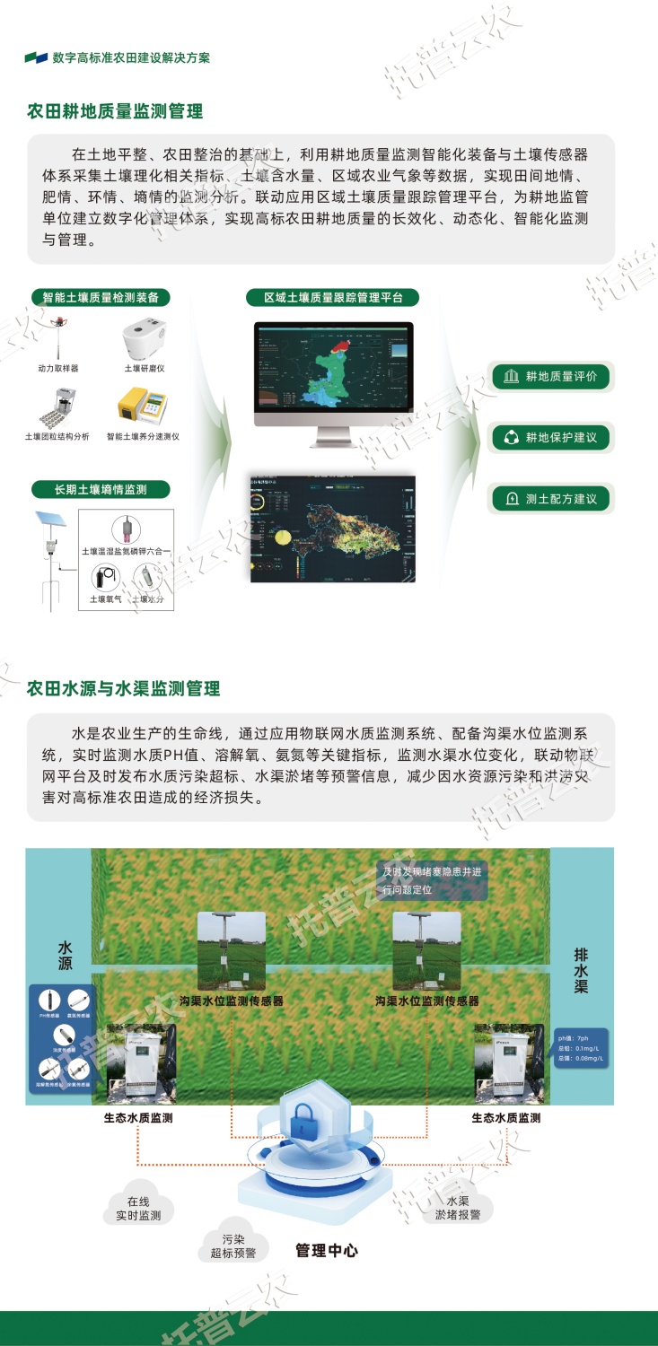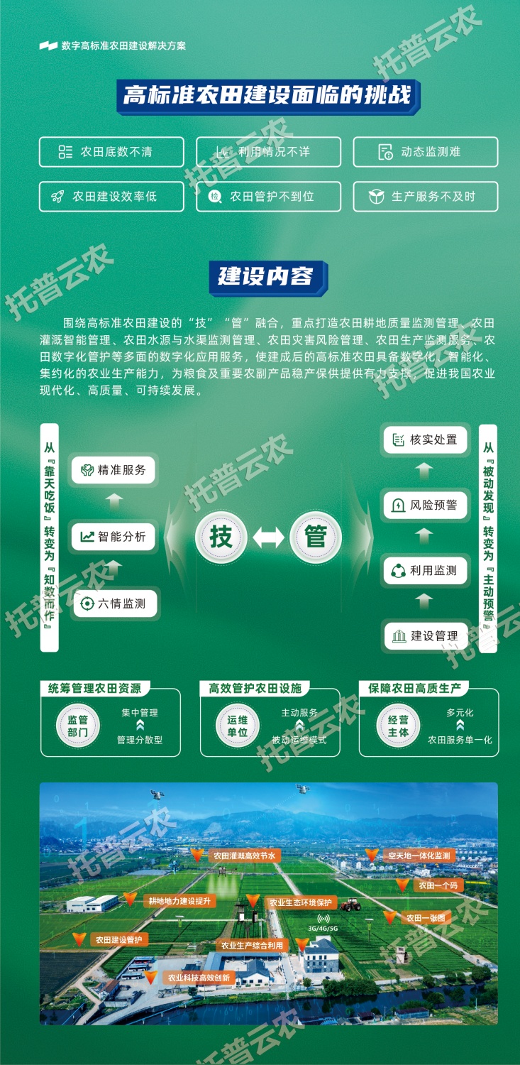 作為中國(guó)智慧農(nóng)業(yè)領(lǐng)域的先行者,浙江托普云農(nóng)科技股份有限公司(股票簡(jiǎn)稱(chēng):托普云農(nóng),股票代碼:301556)始終立于行業(yè)一線,深入探索數(shù)智技術(shù)與農(nóng)業(yè)生產(chǎn)的融合應(yīng)用,以高標(biāo)準(zhǔn)農(nóng)田建設(shè)的“技”“管”融合為理念,以關(guān)鍵智能化場(chǎng)景打造為抓手,構(gòu)建數(shù)字化、智能化、集約化的高標(biāo)準(zhǔn)農(nóng)田(綠色農(nóng)田)建設(shè)解決方案。