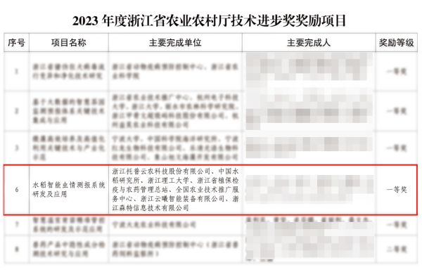 近日,加快建設(shè)創(chuàng)新浙江因地制宜發(fā)展新質(zhì)生產(chǎn)力動(dòng)員部署會(huì)暨全省科學(xué)技術(shù)獎(jiǎng)勵(lì)大會(huì)在杭州舉行。大會(huì)公布并表彰了2023年度浙江省科學(xué)技術(shù)獎(jiǎng)。其中,由浙江托普云農(nóng)科技股份有限公司(股票簡(jiǎn)稱:托普云農(nóng),股票代碼:301556)牽頭完成的《水稻智能蟲情測(cè)報(bào)系統(tǒng)研發(fā)及應(yīng)用》成果榮獲2023年度浙江省科學(xué)技術(shù)進(jìn)步獎(jiǎng)三等獎(jiǎng)。這是該項(xiàng)成果繼榮獲“2023年度浙江省農(nóng)業(yè)農(nóng)村廳技術(shù)進(jìn)步獎(jiǎng)一等獎(jiǎng)”之后斬獲的第二個(gè)重磅獎(jiǎng)項(xiàng),充分展現(xiàn)了托普云農(nóng)在農(nóng)業(yè)科技創(chuàng)新領(lǐng)域的卓越實(shí)力。
