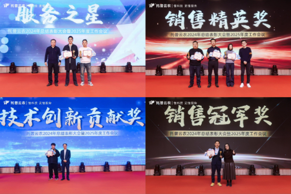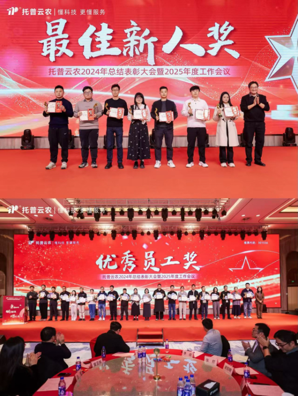 過去的2024年,托普云農(nóng)人才輩出,各領(lǐng)域先進(jìn)典型不斷涌現(xiàn)。本次年會,公司為2024年度在各個崗位上表現(xiàn)卓越的個人和團(tuán)隊(duì),頒發(fā)了包括最佳新人、優(yōu)秀員工、服務(wù)之星、技術(shù)創(chuàng)新、銷售精英、最佳團(tuán)隊(duì)、總經(jīng)理特別獎、托普特別貢獻(xiàn)人物等在內(nèi)的十余個獎項(xiàng)。他們以卓越的表現(xiàn)詮釋了何為托普精神,用堅(jiān)持照亮了全體員工的奮進(jìn)方向。表彰儀式氣氛熱烈,公司對這些優(yōu)秀員工及團(tuán)隊(duì)的高度認(rèn)可,贏得了現(xiàn)場陣陣掌聲。